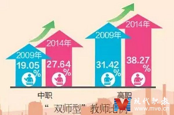 師資是提高教育質(zhì)量的關(guān)鍵。據(jù)介紹,2014年,中等職業(yè)教育專任教師數(shù)為86.30萬(wàn)人,生師比為21.3∶1,而2010年的這一比例是26.6∶1。高等職業(yè)教育生師比為17.6∶1,與本科高等學(xué)校生師比基本一致。多地通過(guò)培養(yǎng)培訓(xùn)并舉、實(shí)施教師素質(zhì)提高計(jì)劃、教師企業(yè)實(shí)踐、對(duì)口培訓(xùn)和境外培訓(xùn),促進(jìn)“雙師型”教師隊(duì)伍建設(shè),“雙師型”教師比例有較大提升。
