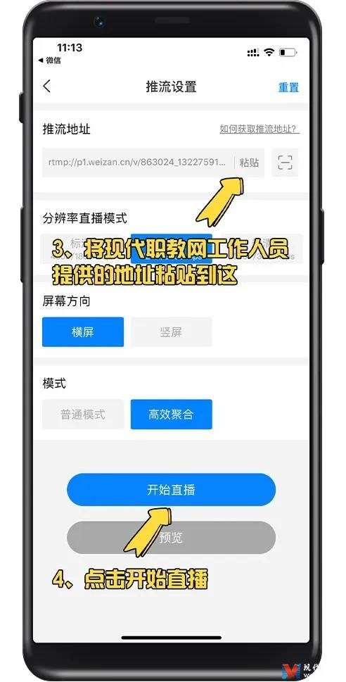 首先請老師們聯(lián)系現(xiàn)代職教網(wǎng) 劉莉老師 13110083805 (VX同號)填寫申請表,獲取微信直播房間,并獲得推流地址和直播觀看二維碼或小程序。
